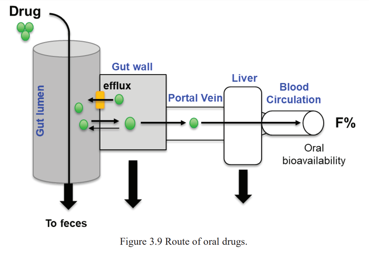 La segunda figura muestra la absorción en un solo esquema, destacando el hecho de que los medicamentos terminan pasando por el hígado antes de convertirse en parte del torrente sanguíneo general, por lo que siempre se deben tener en cuenta las formas en que el hígado interactúa con el medicamento.