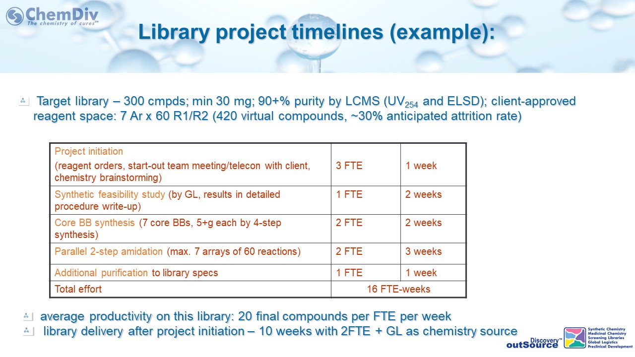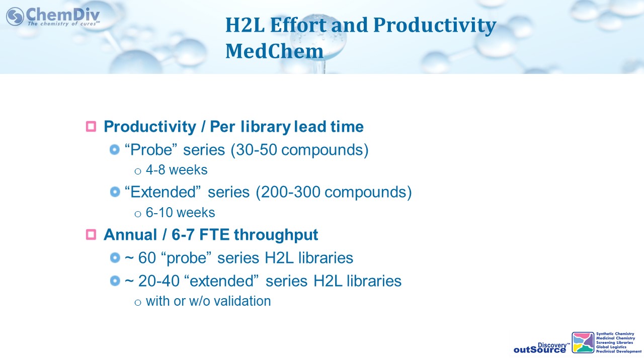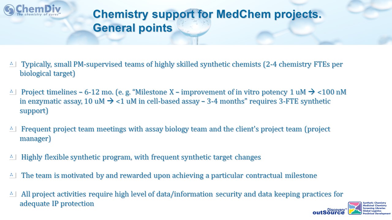 El desarrollo de un perfil farmacológico óptimo requiere experiencia. ChemDiv lo apoya en cada paso del proceso para mejorar los parámetros específicos de las moléculas y progresar, desde un éxito hasta una ventaja y un candidato clínico exitoso.